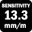 - The radius of the vial is 150 mm, giving a sensitivity of 13 mm/m.