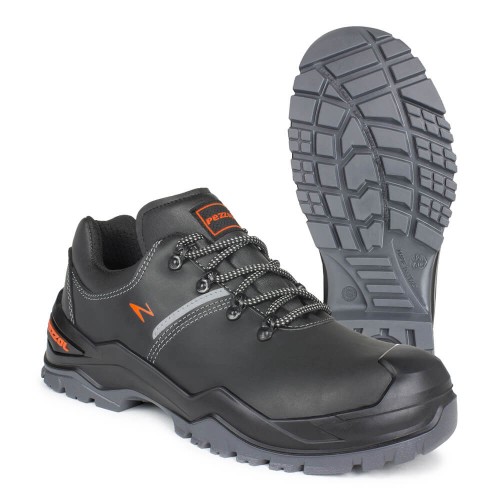 Low-cut safety shoe made of full-grain Idrotech leather with high water resistance proprieties. Three-dimensional Spyder-Net lining offers excellent comfort, breathability and dry feet. Icon dual-density Pu sole designed to offer excellent performance in all work environments and on all grounds. Slip-resistance sole tested to the SATRA laboratories on metal grating and wooden scaffold boards. PZX fiberglass toe cap and anti-puncture Txzero insert for extreme lightness, protection and flexibility.