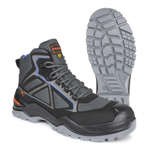Mid-cut with a sporty look made of breathable three-dimensional fabric mesh and X-Leather diamond effect on toe, a skin finished with a multi-layer of polyurethane compound with highest abrasion features resistance.