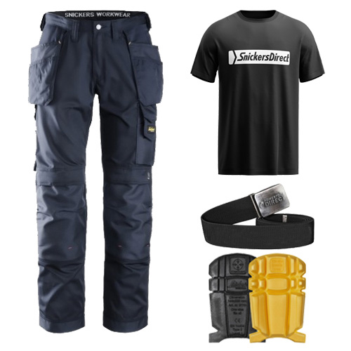 Snickers 3211 Kit Inc 9110 Kneepads & SnickersDirect T-Shirt, PTD Belt, Snickers Trousers